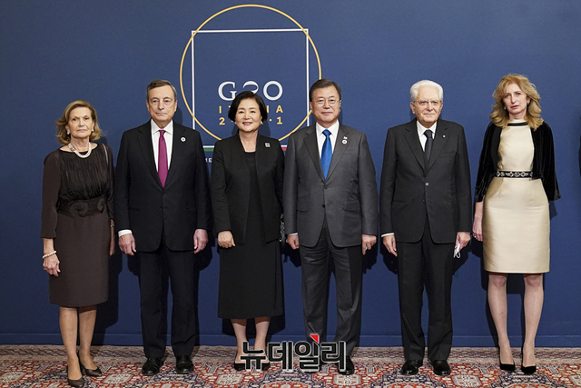 문재인 대통령이 30일 오후(현지시간) 이탈리아 로마 대통령궁에서 진행된 이탈리아 대통령 주최 만찬에서 세르지오 마타렐라 이탈리아 대통령과 인사를 나누고 있다. (사진=청와대)