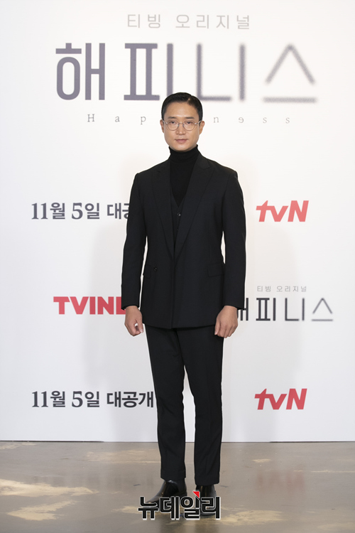 배우 조우진이 1일 오후 온라인으로 진행된 티빙 오리지널 '해피니스(연출 안길호, 극본 한상운)' 제작발표회에서 포즈를 취하고 있다.