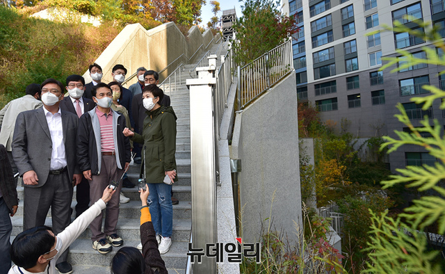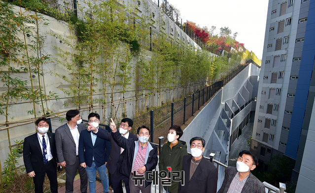 [포토] 성남 백현동 옹벽아파트 현장 찾은 국민의힘 이재명특위