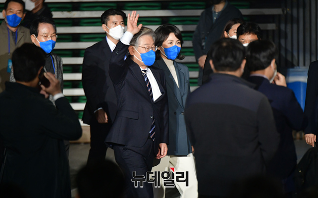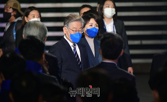 [포토] 입장하는 이재명 민주당 대통령 후보와 부인 김혜경 씨