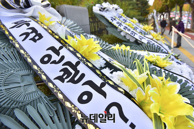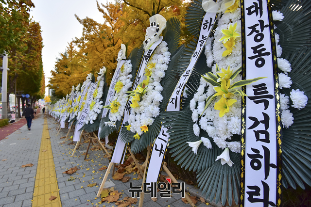[포토] 대검찰청 앞에 놓인 대장동 게이트 특검 촉구 근조화환