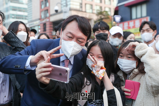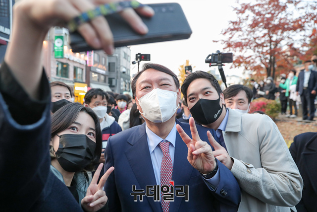 윤석열 국민의힘 대선 경선 후보가 3일 오후 서울 마포구 경의선 숲길을 방문해 시민들들과 인사를 나누고 있다. (사진=윤석열 캠프)