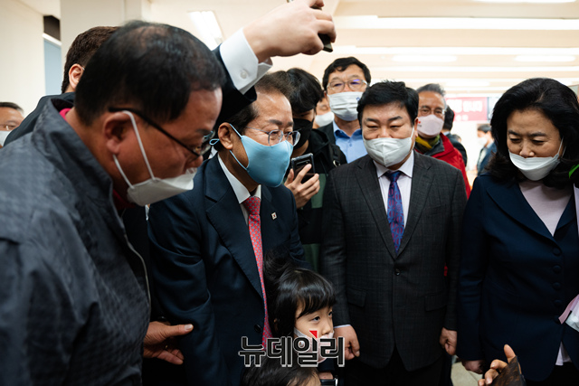 홍준표 국민의힘 대선 경선 후보가 4일 오전 경기도 수원 국민의힘 경기도당위원회를 방문해 지지자들과 인사를 나누고 있다. (사진=홍준표 캠프)