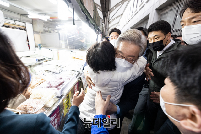 이재명 더불어민주당 대선 후보가 5일 오후 대구 중구 서문시장을 방문해 상인과 악수를 나누고 있다. (사진=이재명 캠프)