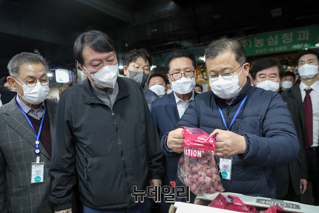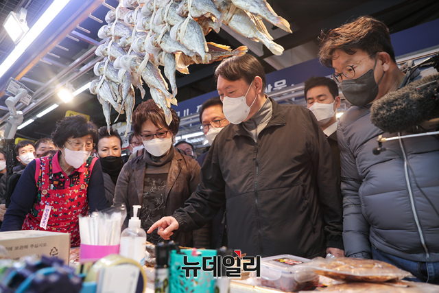 [포토] 첫 공식 일정으로 가락시장 찾은 윤석열 후보