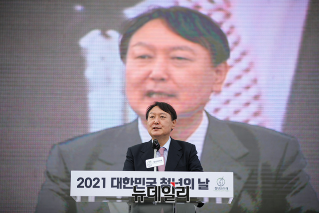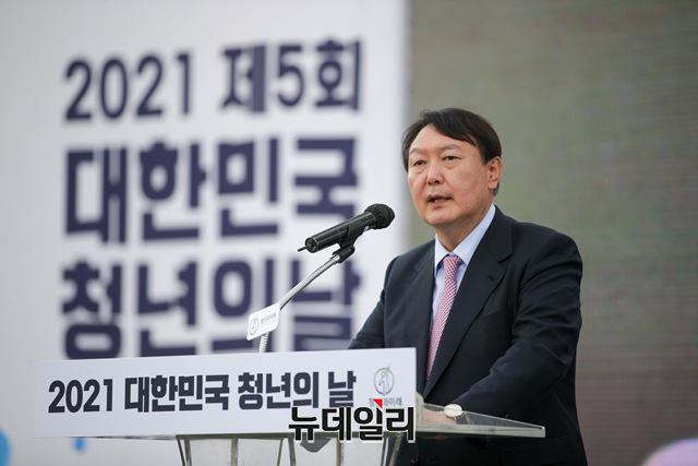 [포토] 2021 대한민국 청년의날 행사, 축사하는 윤석열