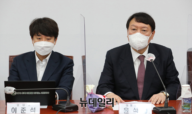 [포토] 최고위원회의 참석한 윤석열 국민의힘 대선후보