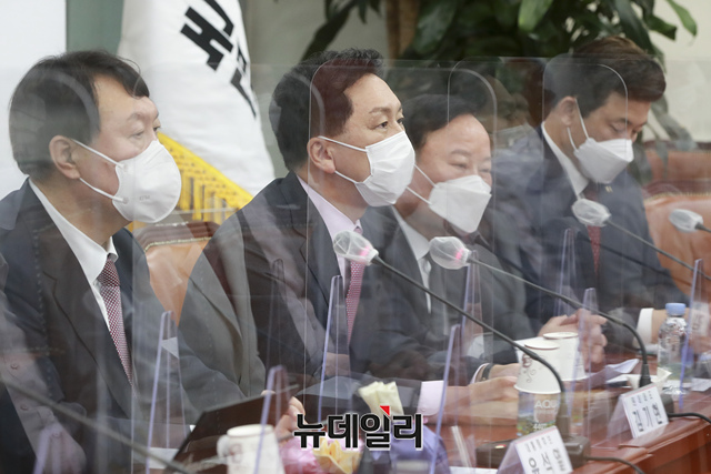 김기현 국민의힘 원내대표가 8일 오전 국회에서 열린 최고위원회의에서 모두발언을 하고 있다. (사진=공동취재단)