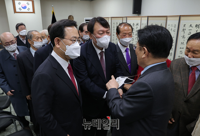 [포토] 헌정회 회원들과 대화 나누는 윤석열 대선후보