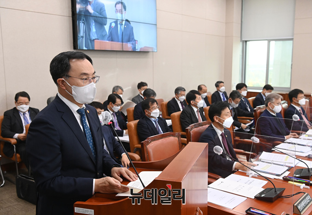 문승욱 산업통상자원부 장관이 8일 국회에서 열린 산업통상자원중소벤처위원회 전체회의에서 2022년도 예산안에 대한 제안설명을 하고 있다. (사진=공동취재단)