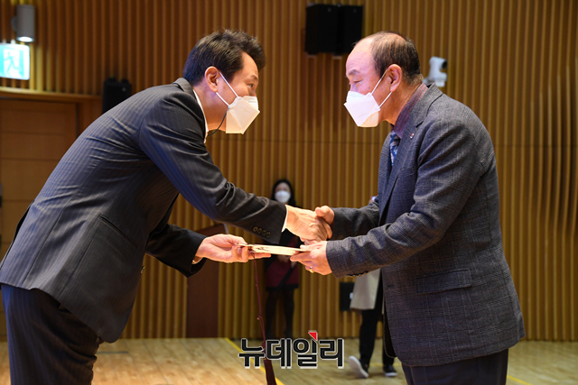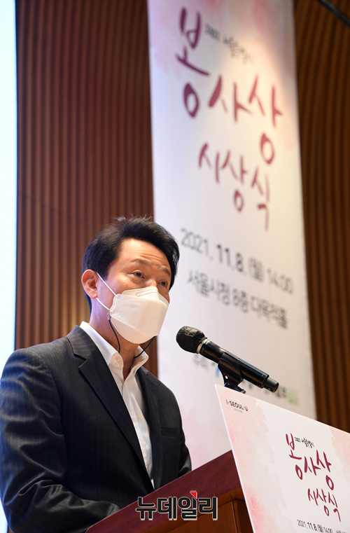 [포토] 2021서울특별시 봉사상 시상식 참석한 오세훈