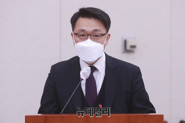 김진욱 고위공직자범죄수사처장이 9일 오전 서울 여의도 국회에서 열린 법제사법위원회의 전체회의에서 2022년도 예산 및 기금운용계획안 제안설명을 하고 있다. (사진=공동취재단)