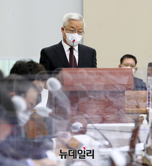 송선태 5·18민주화운동 진상규명조사위원회 위원장이 9일 오전 국회에서 열린 국방위원회 전체회의에서 내년도 예산안 제안 설명을 하고 있다. (사진=공동취재단)