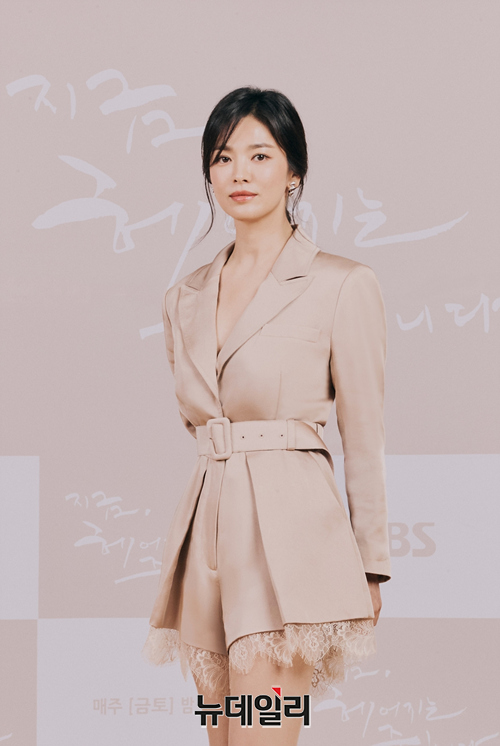 배우 송혜교가 9일 오후 온라인으로 진행된 SBS 금토드라마 '지금, 헤어지는 중입니다(연출 이길복, 극본 제인)' 제작발표회에서 포즈를 취하고 있다.