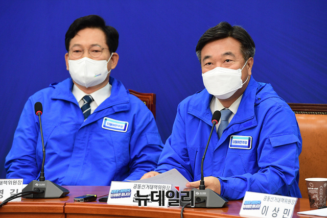 윤호중 더불어민주당 공동선거대책위원장이 10일 국회에서 열린 중앙선거대책위원회의에서 발언을 하고 있다. (사진=공동취재단)
