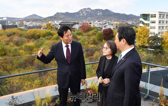 이날 오 시장, 황 장관, 김영나 국가기증 이건희 소장품 활용위원회 위원장이 이건희 기증관 건립부지로 결정된 송현동 일대를 살펴봤다. (사진=서울시)