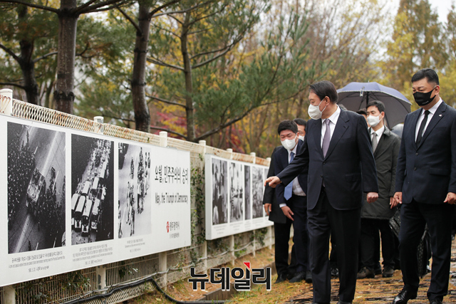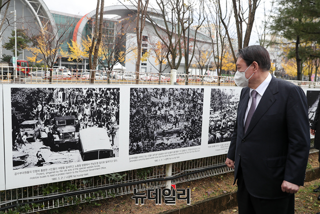 [포토] 광주 5.18공원서 전시물 관람하는 윤석열