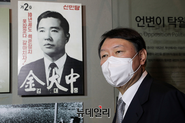 [포토] 김대중 노벨평화상기념관 찾은 윤석열 대선후보