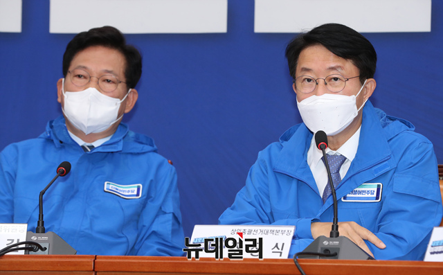 조정식 더불어민주당 상임총괄선거대책본부장이 12일 오전 국회에서 열린 총괄본부장단 회의에서 발언하고 있다. (사진=공동취재단)