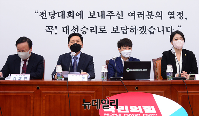 김기현 국민의힘 원내대표가 15일 오전 국회에서 열린 최고위원회의에 참석해 모두발언을 하고 있다. (사진=공동취재단)
