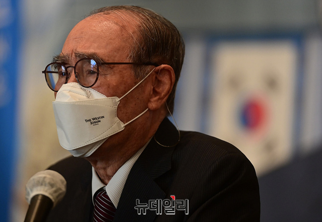 이홍구 전 국무총리가 15일 오전 서울 용산구 그랜드하얏트 서울에서 열린 김종인 전 국민의힘 비대위원장 출판기념회에 참석해 자리하고 있다.