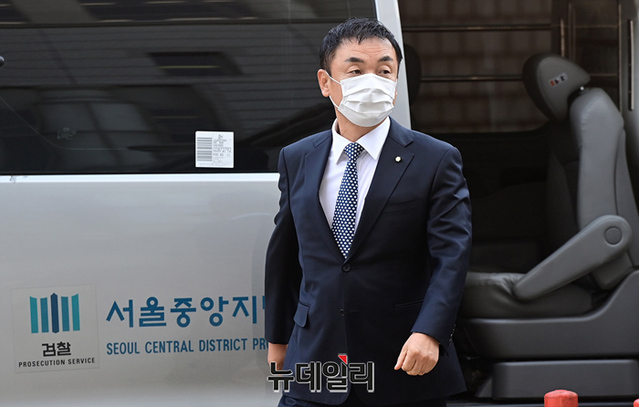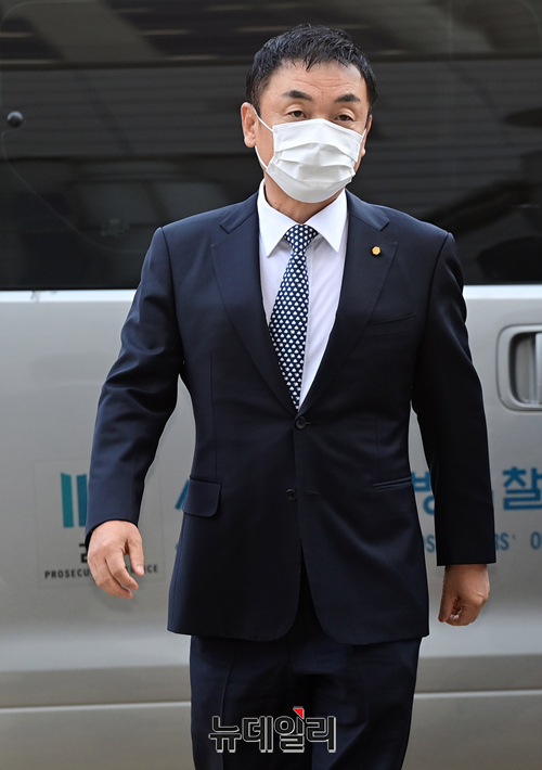 주가조작·배임 혐의를 받고 있는 권오수 도이치모터스 회장이 16일 오전 서울 서초구 서울중앙지방법원에서 열린 구속 전 피의자 심문(영장실질심사)에 출석하고 있다.