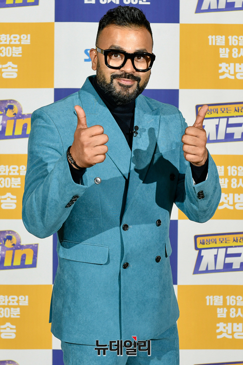 방송인 럭키가 16일 오전 온라인으로 열린 SBS플러스 새 예능 '세상의 모든 사건 지구in(연출 이양화)' 제작발표회에서 포즈를 취하고 있다.