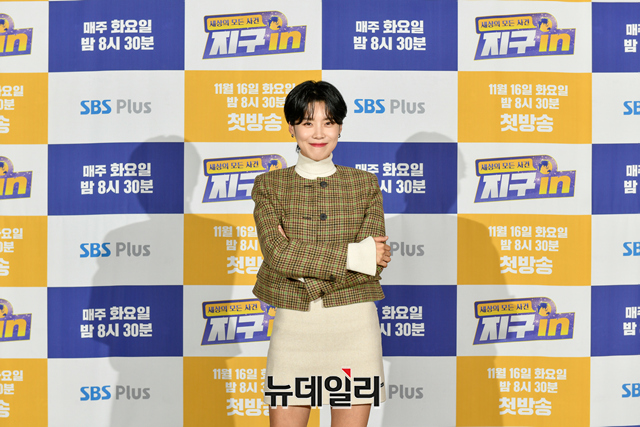 개그우먼 장도연이 16일 오전 온라인으로 열린 SBS플러스 새 예능 '세상의 모든 사건 지구in(연출 이양화)' 제작발표회에서 포즈를 취하고 있다.