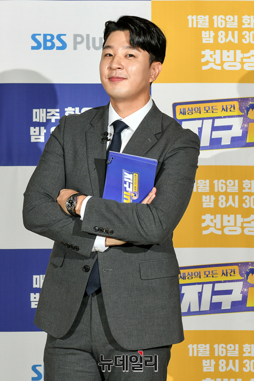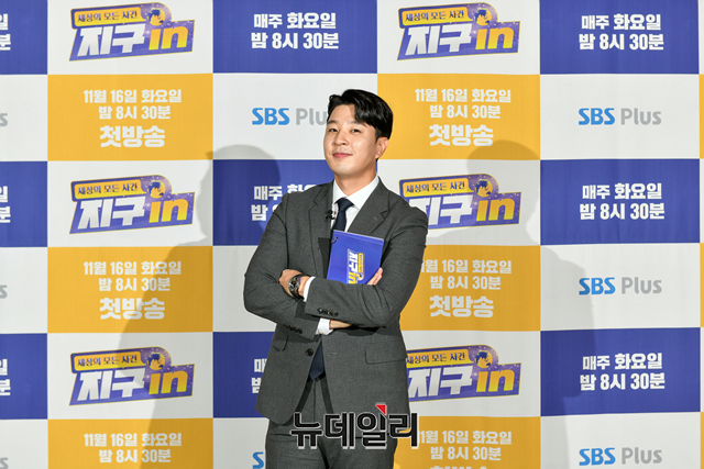 MC를 맡은 아나운서 안현준이 16일 오전 온라인으로 열린 SBS플러스 새 예능 '세상의 모든 사건 지구in(연출 이양화)' 제작발표회에서 포즈를 취하고 있다.
