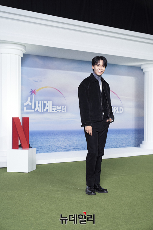 가수 겸 배우 이승기가 17일 오전 온라인으로 열린 넷플릭스 시리즈 '신세계로부터(연출 조효진, 고민석)' 제작발표회에서 포즈를 취하고 있다.