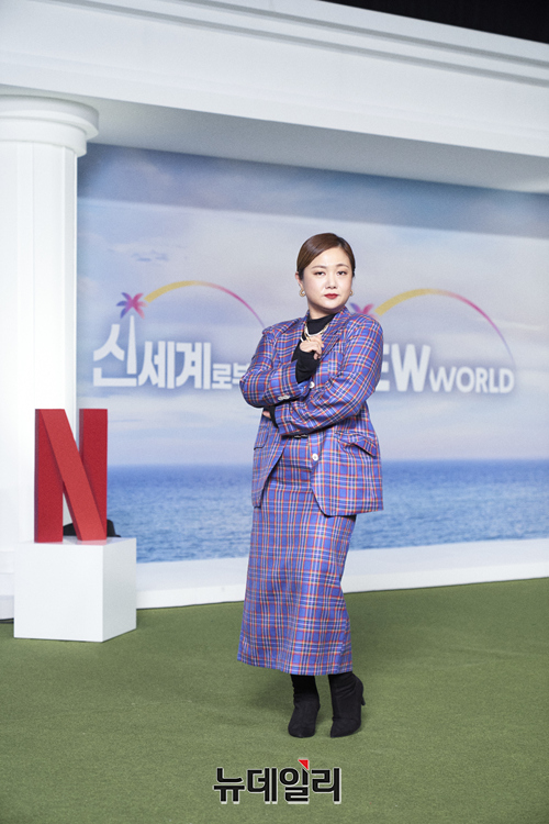개그우먼 박나래가 17일 오전 온라인으로 열린 넷플릭스 시리즈 '신세계로부터(연출 조효진, 고민석)' 제작발표회에서 포즈를 취하고 있다.