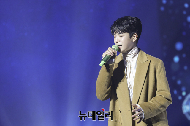 가수 정동원이 17일 오후 서울 용산구 노들섬 라이브하우스에서 열린 첫 정규 앨범 '그리움, 아낌없이 주는 나무' 발매 기념 쇼케이스에서 무대를 선보이고 있다.'그리움, 아낌없이 주는 나무'는 만남과 이별 그리고 옛 추억에 관한 서정적인 이야기를 다루고 있다.더블 타이틀곡 '잘가요 내사랑'은 소중했던 이들을 떠나보낸 모든 사람들에게 위로와 아름다운 추억을 떠오르게 하는 곡이다.'물망초' '나를 잊지 말아요'를 포함해 총 12곡이 수록됐다. 음원은 오후 6시 공개 된다. (사진=쇼플레이엔터테인먼트)