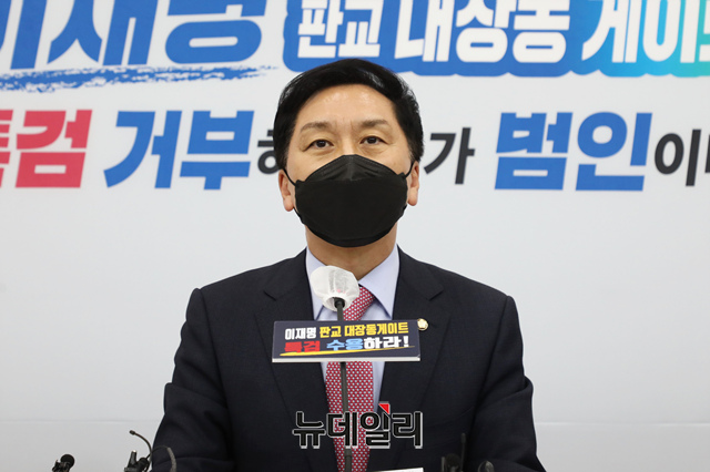 김기현 국민의힘 원내대표가 17일 오후 국회에서 긴급 기자간담회를 열고 내년도 예산안 관련 발언을 하고 있다 (사진=공동취재단)