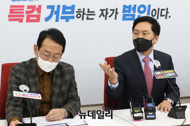 [포토] 긴급 기자간담회 갖는 김기현 국민의힘 원내대표