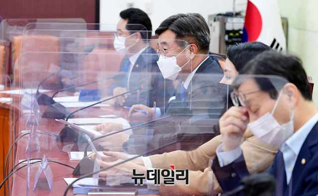 윤호중 더불어민주당 원내대표가 17일 오전 국회에서 열린 더불어민주당 위드코로나 TF 6차 회의에서 모두발언을 하고 있다. (사진=공동취재단)