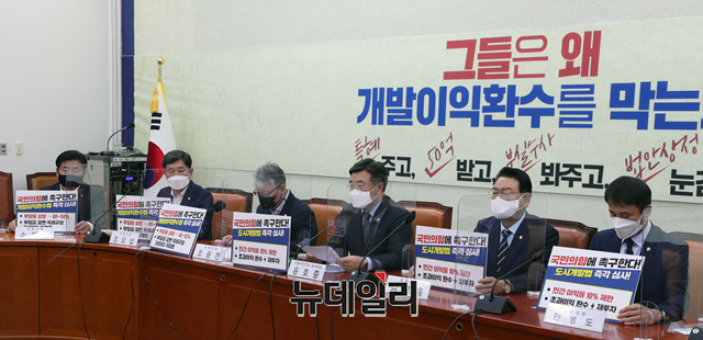 [포토] '개발이익환수법 심사 촉구' 긴급 기자회견 갖는 윤호중