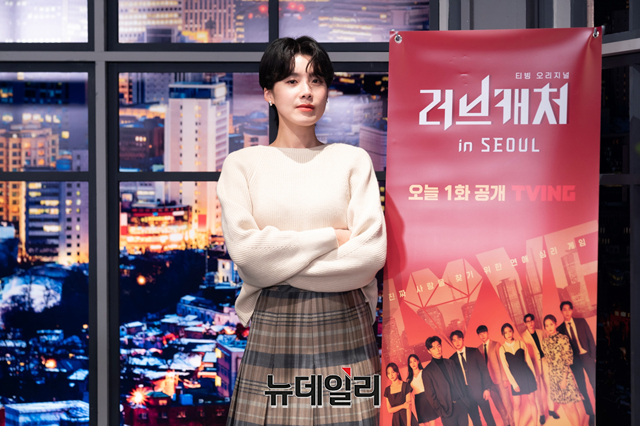 개그우먼 장도연이 19일 오전 온라인으로 진행된 티빙 오리지널 '러브캐처 인 서울(연출 정민석)' 제작발표회에서 포즈를 취하고 있다.