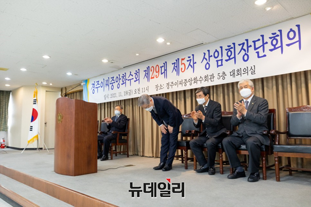 이재명 더불어민주당 대선 후보가 19일 오전 서울 종로구 경주이씨중앙화수회관 대회의실에서 진행된 제29대 5차 상임회장단회의에서 발언을 하고 있다. (사진=이재명 블로그)