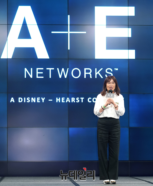 소영선 에이앤이코리아 대표가 19일 오후 서울 용산구 JW메리어트 동대문스퀘어 서울 그랜드볼룸에서 열린 히스토리 오리지널 '위, 사이클(We, Cycle)' 기자간담회에서 발언을 하고 있다.'위, 사이클'은 자전거로 우리나라를 누비며 세상에서 단 하나뿐인 자전거 지도를 완성해 나가는 로드 버라이어티 예능 프로그램이다. 개그맨 유세윤, 영국인 탐험가 제임스 후퍼, 아이콘 송윤형, 펜타곤 우석, AB6IX 전웅 등이 출연한다.19일 밤 8시 에이앤이 코리아 히스토리 채널과 밤 9시 라이프타임 채널에서 첫 방송. (사진=에이앤에이 코리아)