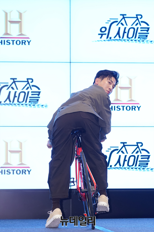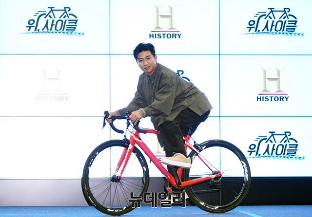 개그맨 유세윤이 19일 오후 서울 용산구 JW메리어트 동대문스퀘어 서울 그랜드볼룸에서 열린 히스토리 오리지널 '위, 사이클(We, Cycle)' 제작발표회에서 포즈를 취하고 있다.'위, 사이클'은 자전거로 우리나라를 누비며 세상에서 단 하나뿐인 자전거 지도를 완성해 나가는 로드 버라이어티 예능 프로그램이다. 개그맨 유세윤, 영국인 탐험가 제임스 후퍼, 아이콘 송윤형, 펜타곤 우석, AB6IX 전웅 등이 출연한다.19일 밤 8시 에이앤이 코리아 히스토리 채널과 밤 9시 라이프타임 채널에서 첫 방송. (사진=에이앤에이 코리아)