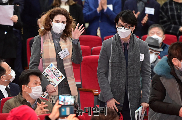 방송인 크리스티나, 성악가 김현준 부부가 22일 오후 서울 종로구 한국교회100주년기념관에서 열린 제1회 리버티국제영화제 개막식에 입장하고 있다.