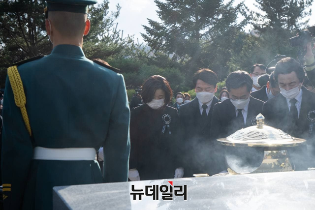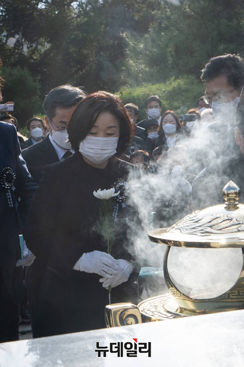 심상정 정의당 대선 후보가 22일 오후 서울 동작구 국립서울현충원에서 열린 故 김영삼 전 대통령 서거 6주기 추모식에서 발언하고 있다. (사진=심상정 캠프)
