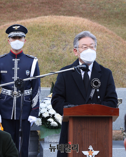 이재명 더불어민주당 대선 후보가 22일 오후 서울 동작구 국립서울현충원에서 열린 故 김영삼 전 대통령 서거 6주기 추모식에서 참배하고 있다. (사진=이재명 블로그)