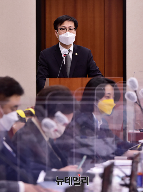여한구 통상교섭본부장이 23일 국회에서 열린 산업통상자원 중소벤처기업 위원회 전체회의에서 FTA 진행사항에 대해 발언을 하고 있다. (사진=공동취재단)