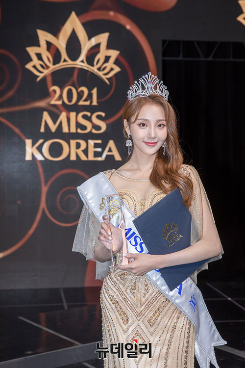 2021 미스코리아 미(美)를 수상한 정도희가 16일 밤 경기 파주시 화유당 스튜디오에서 무관중 사전 녹화로 진행된 '제65회 2021 미스코리아 선발대회' 본선에서 포즈를 취하고 있다.
