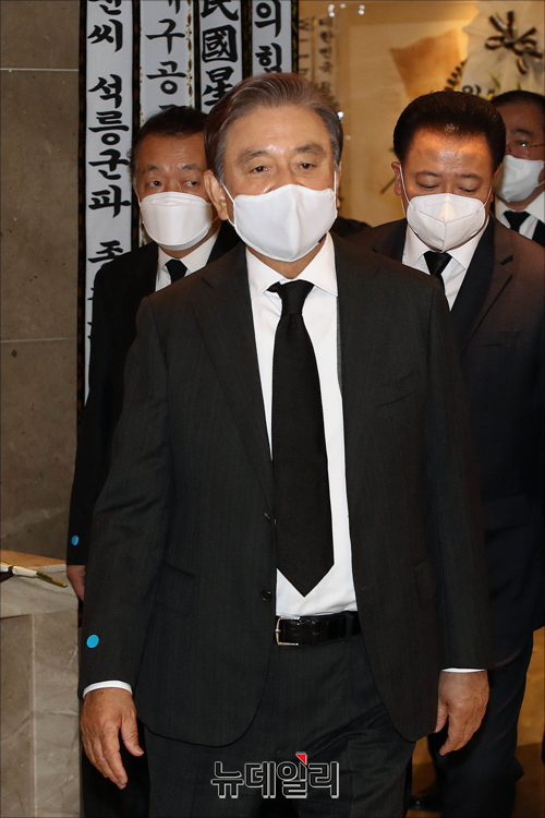 홍석현 중앙홀딩스 회장이 24일 오후 서울 서대문구 신촌세브란스병원 장례식장에 마련된 故 전두환 전 대통령의 빈소를 찾아 조문을 하고 있다. (사진=공동취재단)