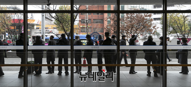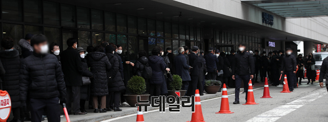 전두환 전 대통령 조문객들이 24일 오후 서울 서대문구 신촌세브란스병원 장례식장에 마련된 故 전두환 전 대통령의 빈소를 조문하기 위해 줄을 서 있다. (사진=공동취재단)