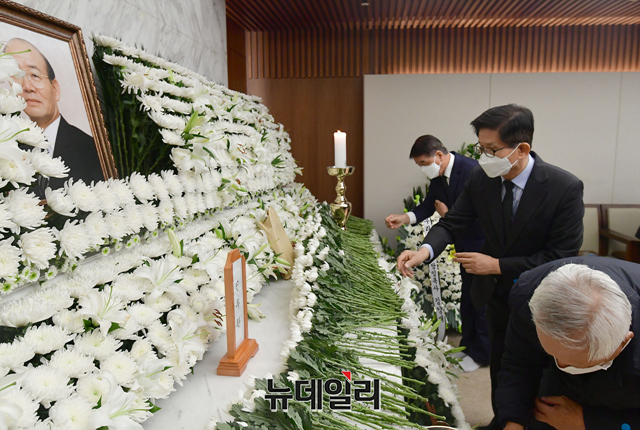 김문수 전 경기지사가 24일 오후 서울 서대문구 신촌세브란스병원 장례식장에 마련된 故 전두환 전 대통령의 빈소를 찾아 조문을 하고 있다. (사진=공동취재단)