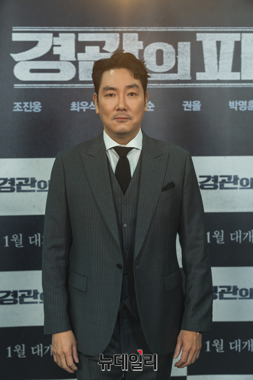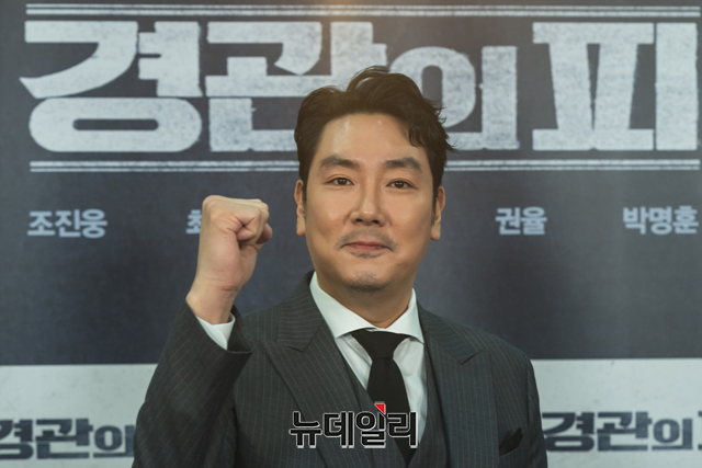배우 조진웅이 25일 오전 온라인으로 진행된 영화 '경관의 피(감독 이규만)' 제작보고회에서 포즈를 취하고 있다.