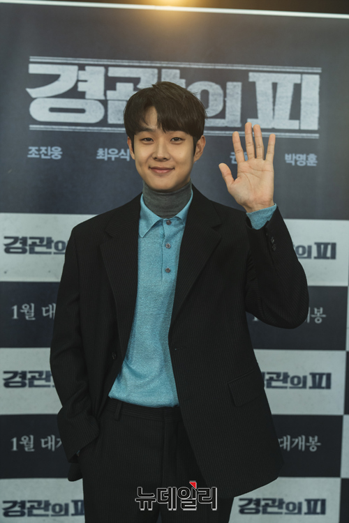 배우 최우식이 25일 오전 온라인으로 진행된 영화 '경관의 피(감독 이규만)' 제작보고회에서 포즈를 취하고 있다.